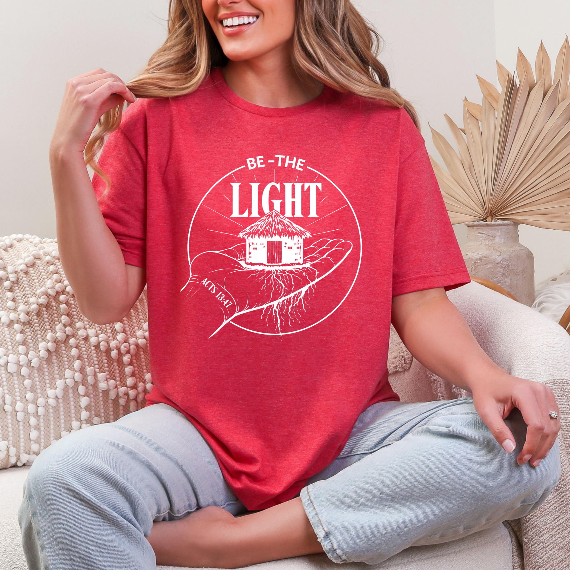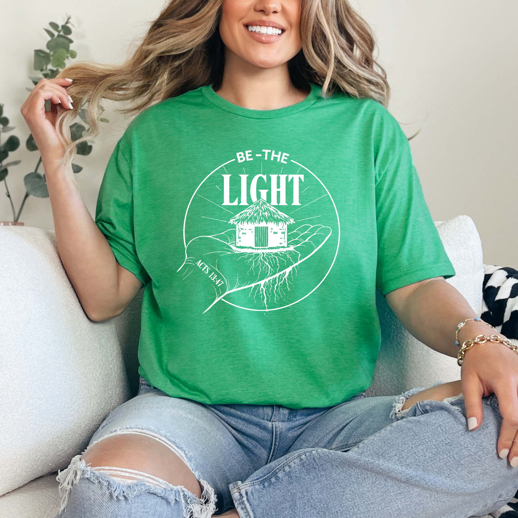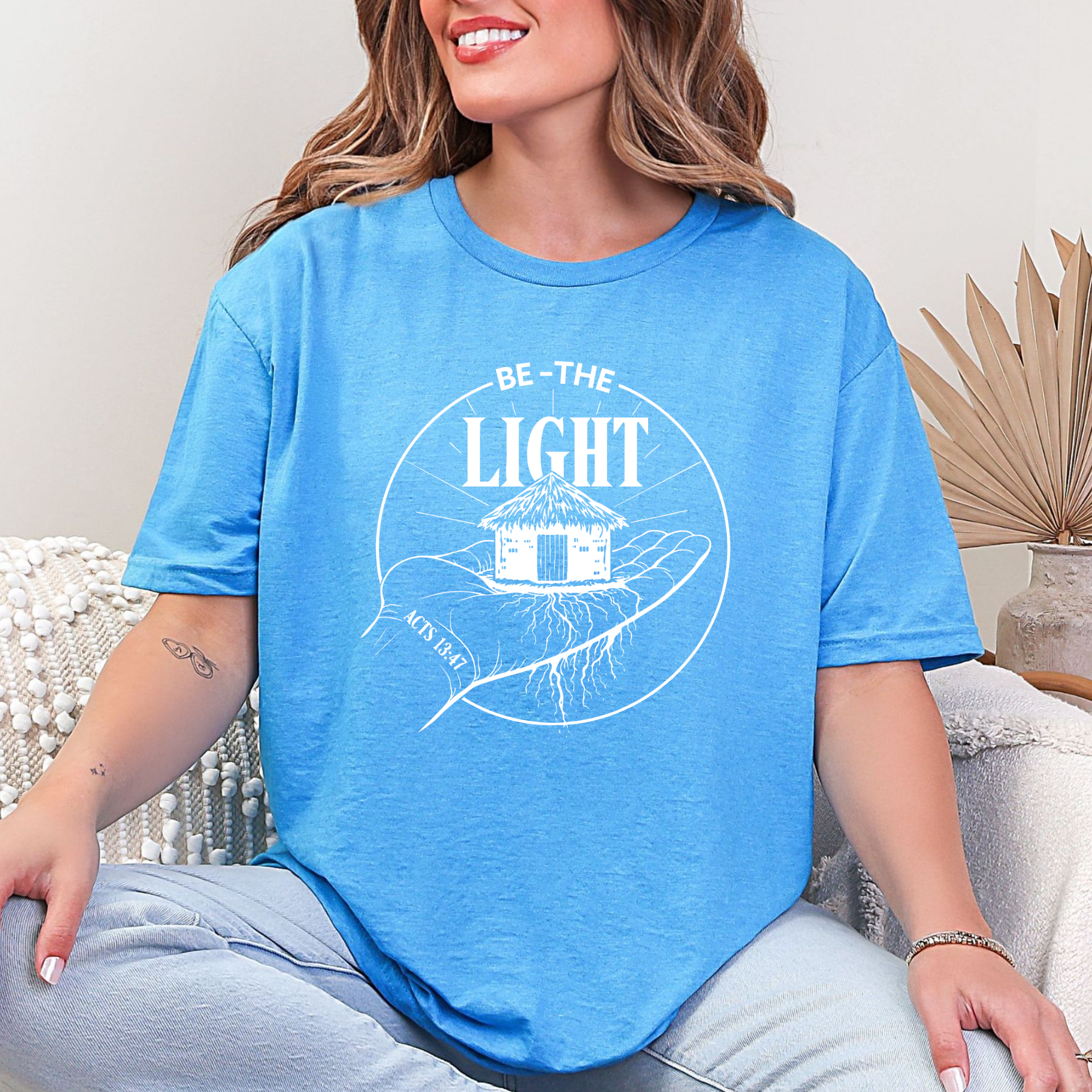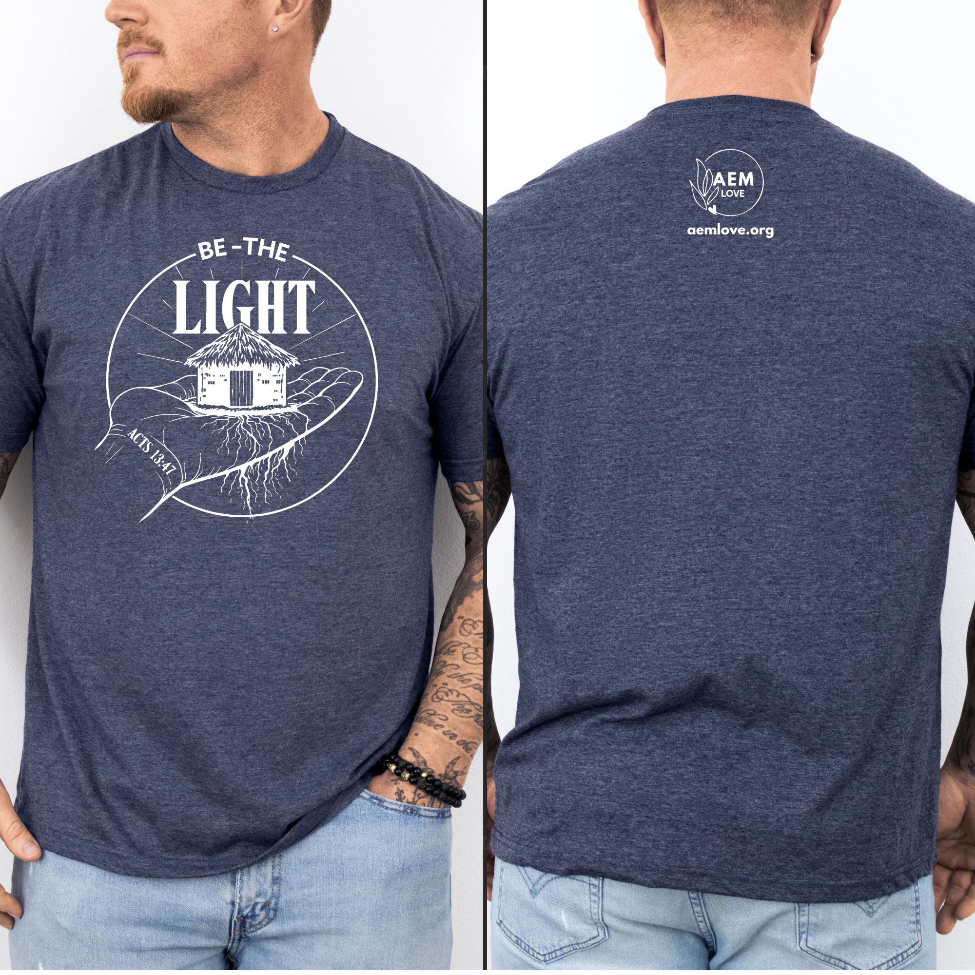 Pre-order now. Our mission trip shirts are back with a new team member drawn design. This first order will ship by April 2nd. Each shirt has the Be The Light design on the front and a small AEM Love logo between the shoulder blades on the back.